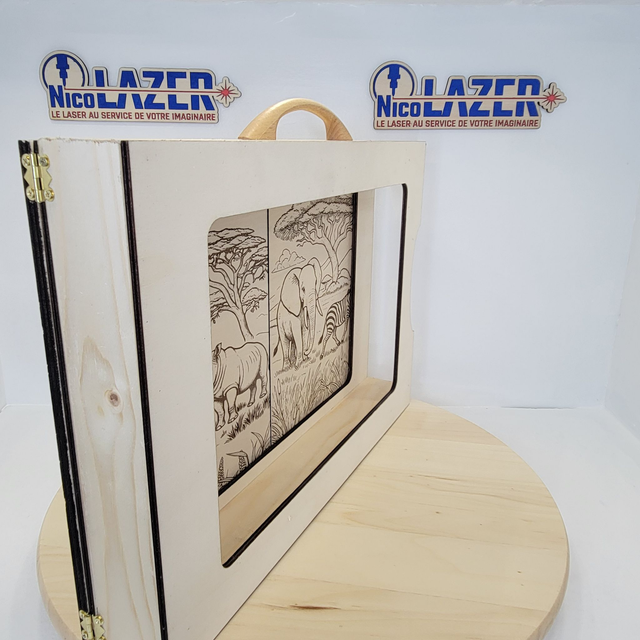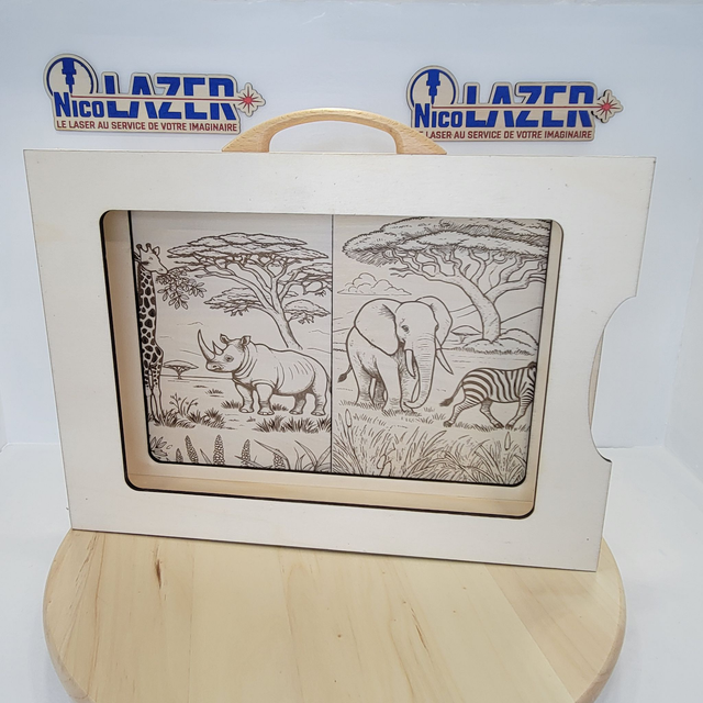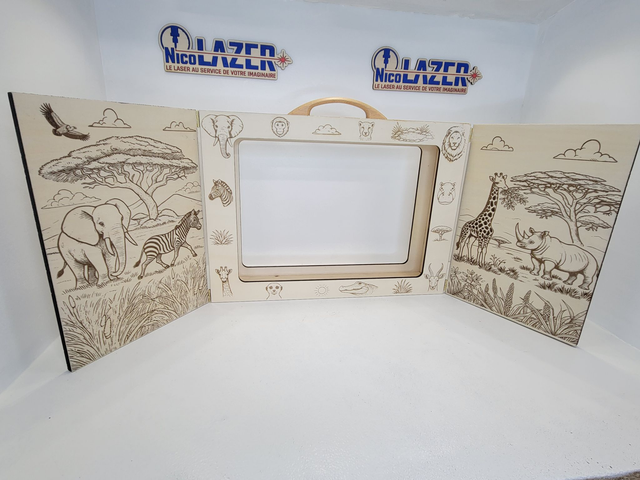 Type d'activité: Transformez la lecture en vrai moment “wahou” : ce butaï s’ouvre comme une petite scène de théâtre et met en valeur vos histoires, cartes ou planches illustrées. La façade gravée savane et l’intérieur décoré plongent les enfants au cœur de l’Afrique !