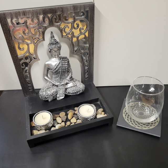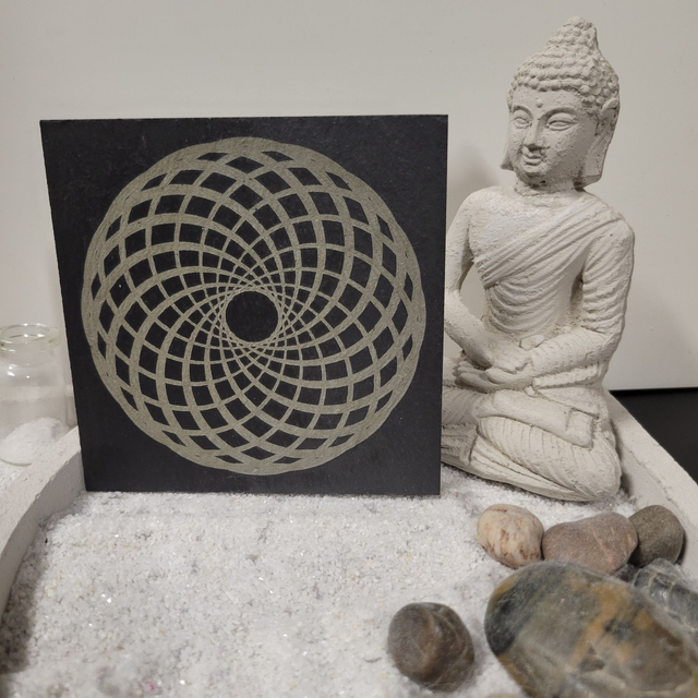 Ce dessous de verre peut être aussi utilisé comme support énergétique pour poser une tasse, des bijoux ou des pierres, ou comme élément décoratif zen et contemporain.
